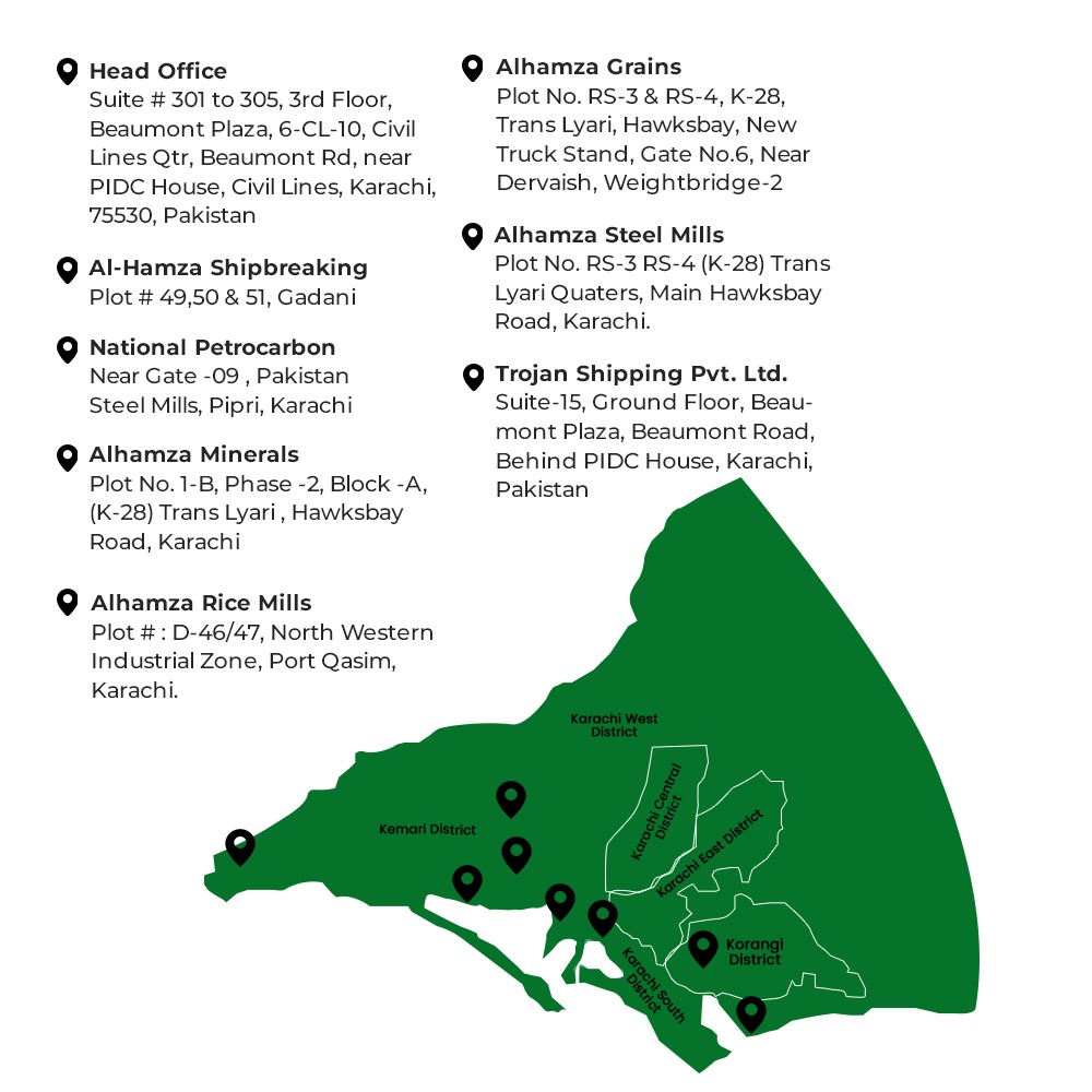 The Al-Hamza Group of Companies is a diversified conglomerate with a long history in trading and manufacturing dating back to 1963. Operating across a wide range of industries, including Petrochemicals, Steel, Ship breaking/ Recycling, Trading of Oil, Minerals and Grains as well as Shipping and logistics.